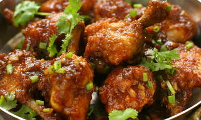 Chicken Wings with Tamarind Sauce Peppercorn, served with Pandan Leaf Rice
