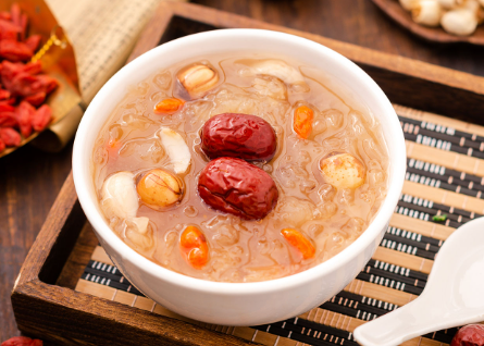 Snow Fungus, Goji Berry, and Silken Tofu Sweet Soup